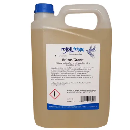 BRÚTUS/ GRANÍT er fjölnota hreinsiefni, sem leysir upp m.a. olíur, tjöru, sót, fitu og prótín. Notkunarsvið BRÚTUS/ GRANÍTAR er fjölbreytt, en BRÚTUS/ GRANÍTmá t.d. nota til að þrífa veggi og gólf á verkstæðum, vélar og vélasamstæður og vinnugalla. Einnig hentar BRÚTUS/ GRANÍT vel til tjöruhreinsunar á farartækjum, til báta- og skipahreinsunar og til daglegra þrifa á ýmsu iðnaðarhúsnæði, t.d. fitugum gólfum í matvælaiðnaði og sótugum flötum á verkstæðum. BRÚTUS/ GRANÍT er vatnsþynnanlegur og án lífrænna leysiefna og hentar því sérlega vel til þrifa í lokuðum rýmum.